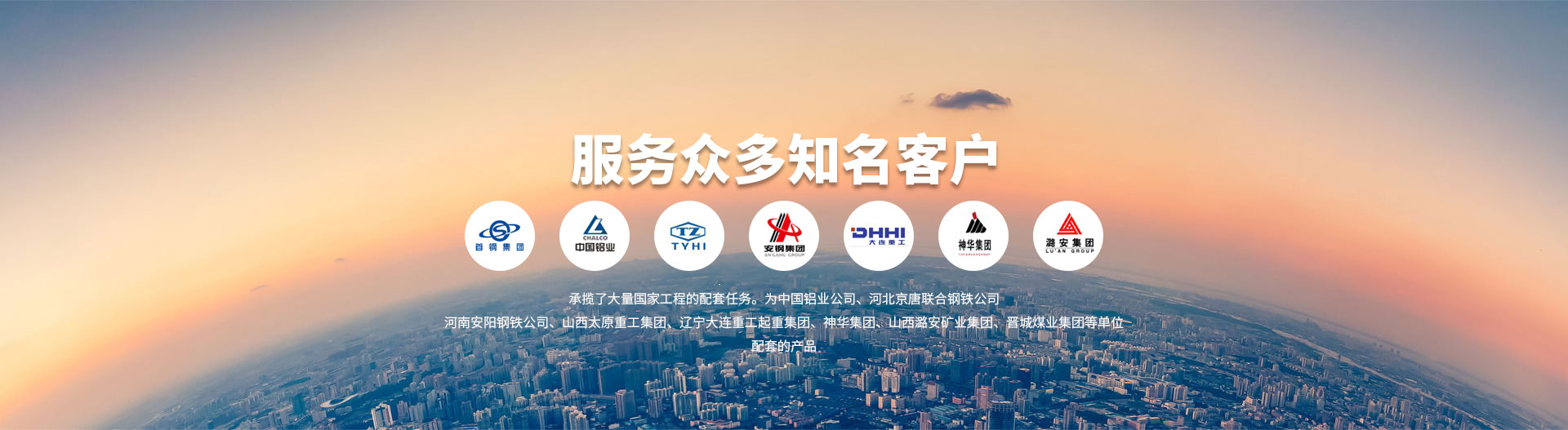 公司近年來(lái)承攬了大量國(guó)家工程的配套任務(wù)。為中國(guó)鋁業(yè)公司、河北京唐聯(lián)合鋼鐵公司、河南安陽(yáng)鋼鐵公司、山西太原重工集團(tuán)、遼寧大連重工·起重集團(tuán)、神華集團(tuán)、山西潞安礦業(yè)集團(tuán)、晉城煤業(yè)集團(tuán)等單位配套的產(chǎn)品